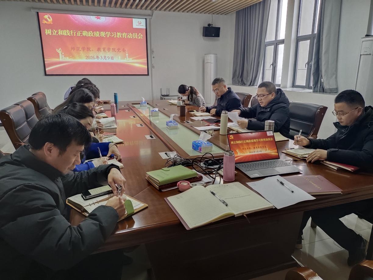 党委副书记、院长邹强对树立和践行正确政绩观学习教育提出四点具体要求:一是要以正确政绩观引领教育教学提质,筑牢育人根基;二是要以正确政绩观引领学科专业发展,彰显师范特色;三是要以正确政绩观引领队伍建设,激发干事活力;四是要以正确政绩观引领管理服务优化,提升师生获得感。