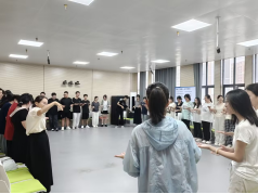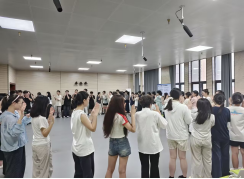 “蜗牛背着那重重的壳啊,一步一步往上爬……”随着经典童谣《蜗牛与黄鹂鸟》的旋律响起,新生们跟随视频学跳手指舞,用指尖比出“葡萄”、模拟“爬坡”。张老师顺势引导:“壳是压力,也是保护;专业学习就像蜗牛爬坡,慢却坚定。”三位同学勇敢分享“曾被嘲笑”的学习经历,现场掌声化作最好的疗愈,从此消解了陌生与拘谨。