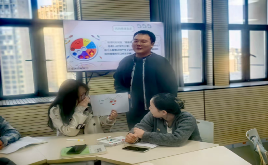 本次示范课以“情绪管理与心理成长”为主题。龙家乐老师凭借其一线工作中积累的大量案例与互动技巧,设计了环环相扣的四个教学板块:“情绪传递接龙”破冰热身,快速激活课堂;“情绪调色盘”引导学生用色彩表达复杂心境;“气球里的情绪难题”则巧妙地将在中学生群体中常见的压力问题可视化、可操作化;最后,“我的情绪主旋律”帮助学生整合所学,构建积极的情绪应对策略。整个教学过程生动展现了一线教师在课堂设计、氛围调动和学生引导方面的精湛技艺。