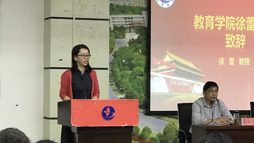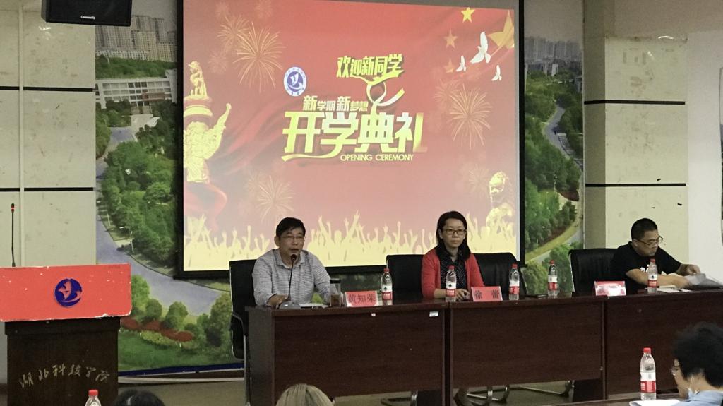 图1为党总支黄知荣书记宣布开学典礼正式开始