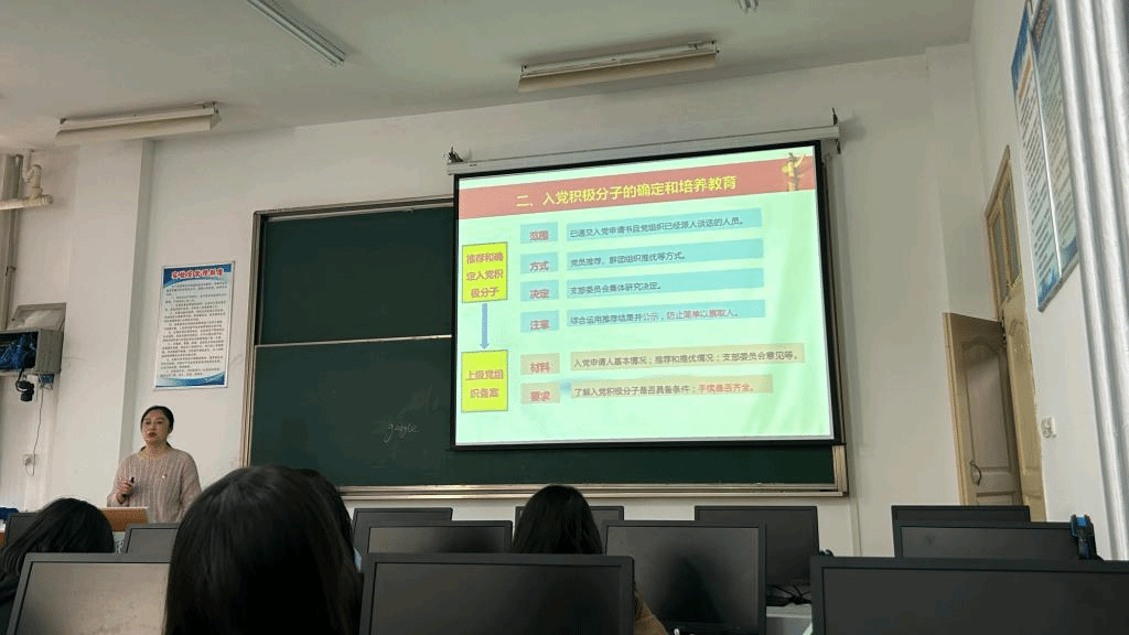 2022年10月13日BBIN波音平台百家乐组织第二期“青马工程”全体学员进行专题培训,“青马工程”班班主任郑珍老师以“党员发展过程知多少”为主题,从中国共产党的宗旨和发展大学生党员意义入手,什么是正确的入党动机,如何端正入党动机,然后从“志愿提出入党申请、确定入党积极分子、指定培养联系人、对入党积极分子进行培养考察核实…等程序一一对发展党员工作程序进行了详细的讲解。她强调,党组织在发展党员的过程中将会严格遵守发展党员工作程序、基本方法和要求;严格遵循“控制总量,优化结构,提高质量,发挥作用”的原则,严把党员的入口关。