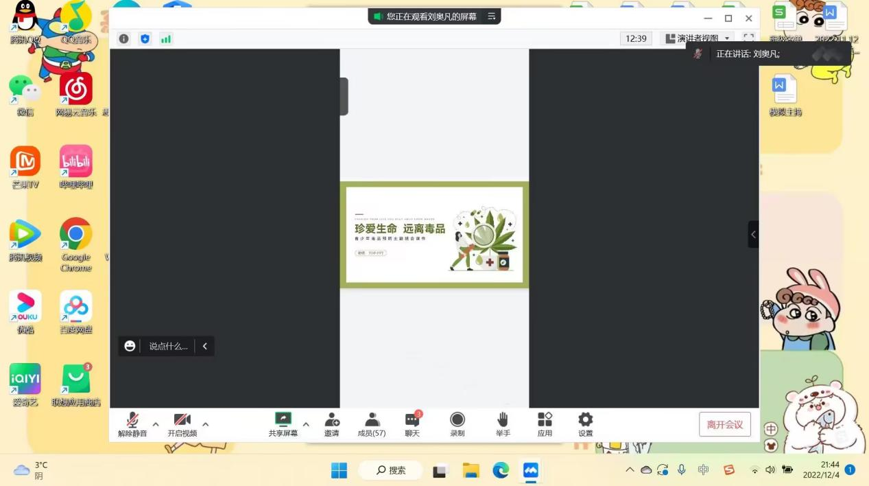 为普及禁毒知识,引导同学们珍爱生命远离毒品,BBIN波音平台百家乐于12月2日晚7:00组织全体同学以线上形式参加了主题为“跟毒品说不 与健康同步”的班会活动。