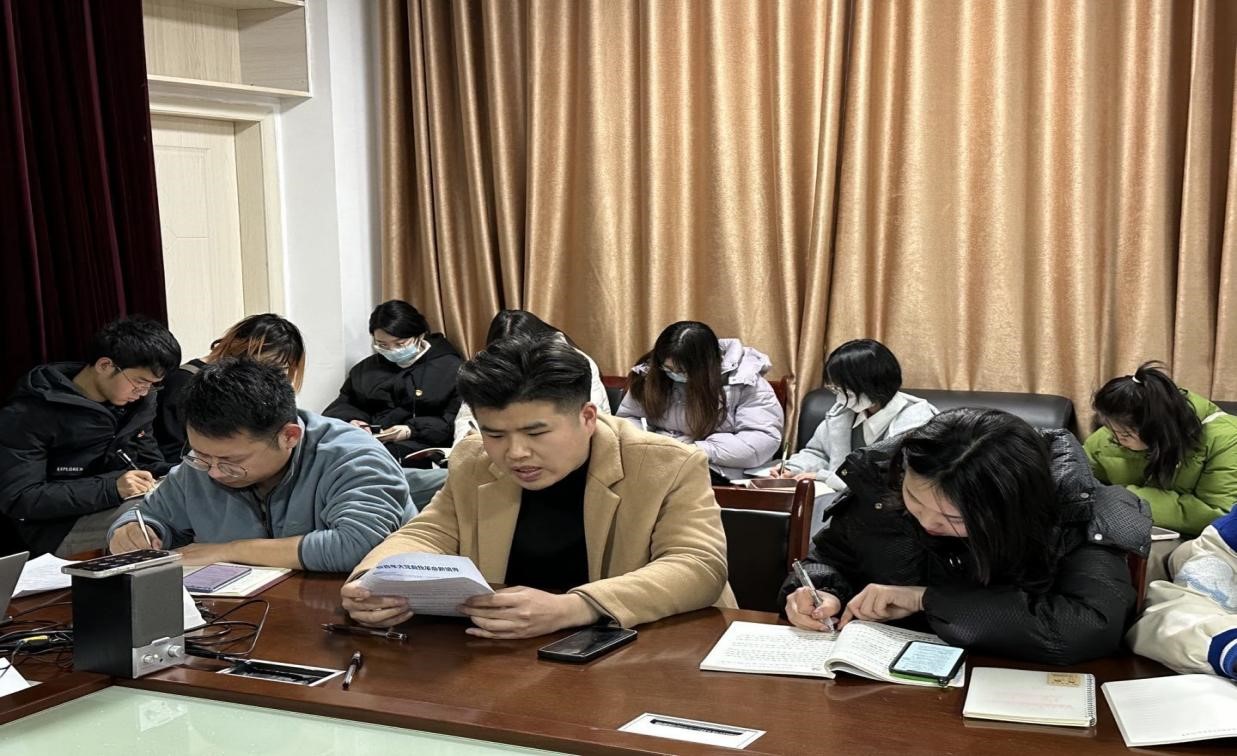 会议上,邓红莲同志领学习近平在二十届中央政治局第一次集体学习时的讲话。讲话中提到党的十九大以来的5年,是极不寻常、极不平凡的5年。党中央统筹中华民族伟大复兴战略全局和世界百年未有之大变局,坚持加强党的全面领导和党中央集中统一领导,发扬斗争精神,全力以赴为如期实现全面建成小康社会目标而奋斗,尽锐出战打赢脱贫攻坚战,统筹新冠肺炎疫情防控和经济社会发展,统筹发展和安全,全面推进党和国家各项事业,团结带领全党全军全国各族人民有效应对严峻复杂的国际形势和接踵而至的巨大风险挑战,以奋发有为的精神把新时代中国特色社会主义不断推向前进。
