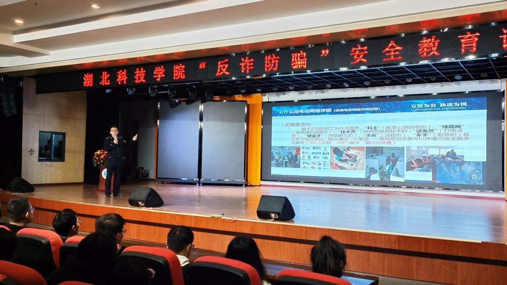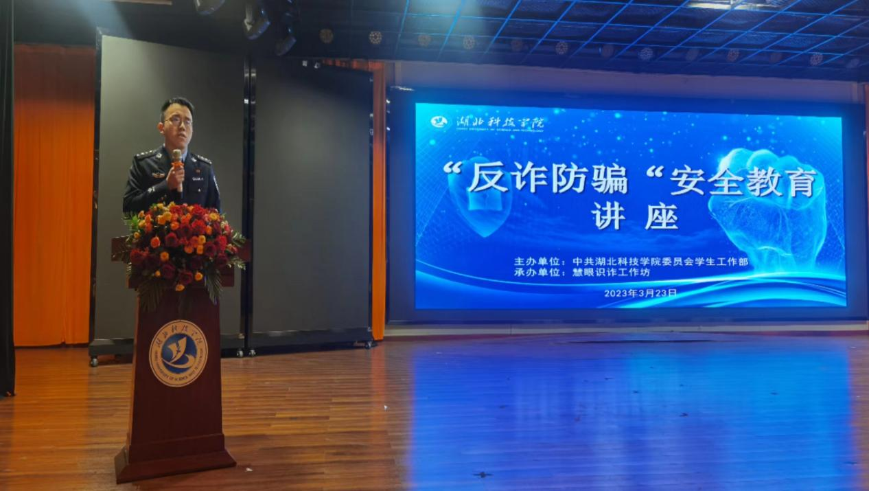 为深入贯彻习近平总书记关于“坚决遏制电信网络诈骗犯罪多发高发态势”的精神指示,全面加强反诈防诈宣传教育,进一步提升我校师生的安全防范意识。3月23日下午3:00,BBIN波音平台百家乐慧眼识诈工作坊特邀咸宁市公安局温泉分局反诈中心饶辉警官来我校进行“反诈防骗”安全教育专题讲座。全校500多名学生参加本次讲座。