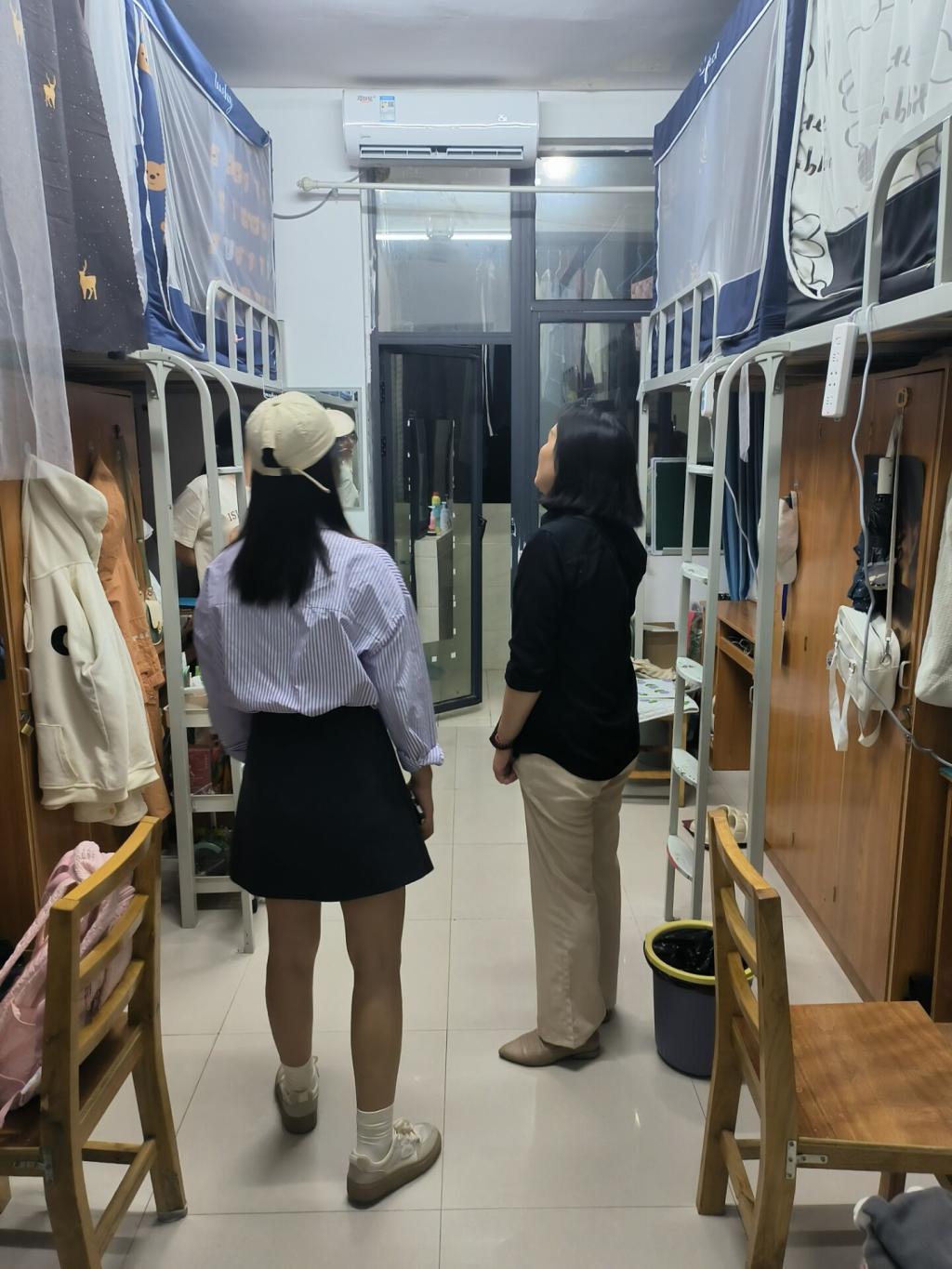 在查寝过程中,班主任对宿舍整体卫生状况、电源使用情况、学生近况等方面进行了了解。就走访结果来看,大部分同学能够自觉维护干净整洁的宿舍环境,并积极响应学校号召,做到人走电断,消除可能引发宿舍危险的各种隐患。班主任也与同学们进行了交流,询问他们最近的身体状况并告诫同学们一定要注意用电安全。学校始终以学生安全为己任,以安全工作为主线,把安全工作落细落实,为学生创造一个安全稳定、文明健康的和谐校园。