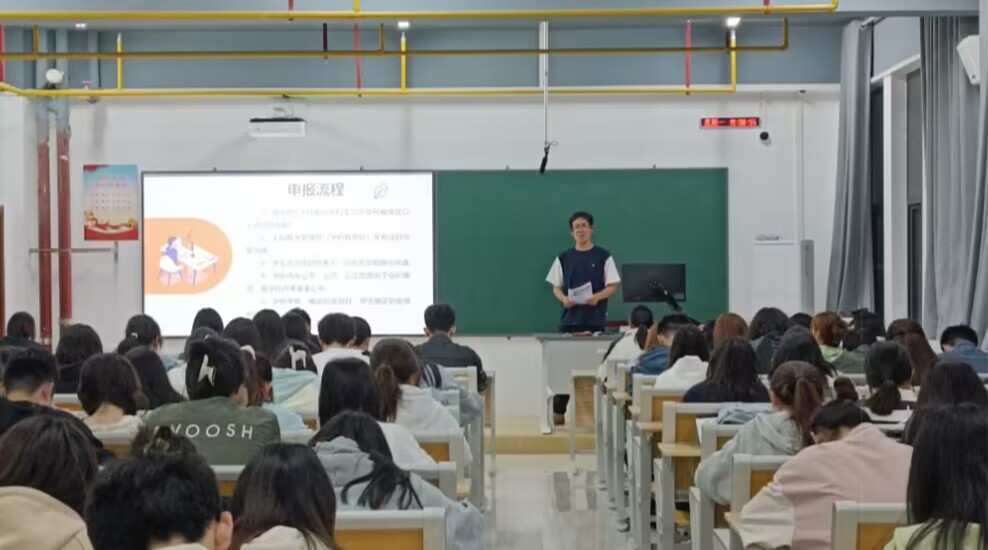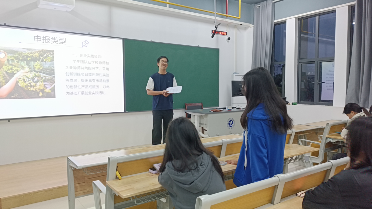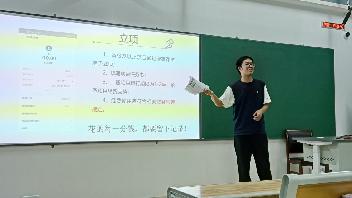 图为侯永发同学讲解大创项目立项细则