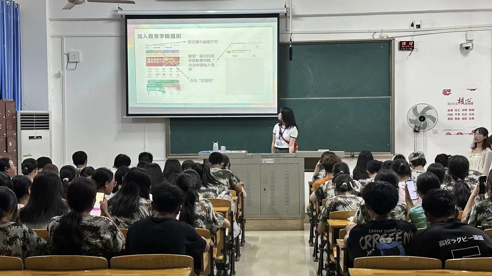 图为学生会干事讲解志愿汇使用方法