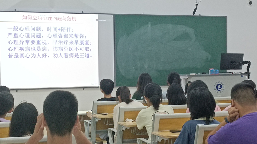 蒋霞霞老师从什么是健康的心理状态、解决心理健康都方法以及如何对待自己等方面进行讲解。蒋老师针对可能存在的心理健康问题提出了建议,引导同学们通过正确的方法调节消极心理状态,在生活上量入为出,自我照顾;学习上要不忘初心,牢记作为学生的使命;人际交往方面应该求同存异,与同学和谐共处。会上,蒋老师向同学们提出建议:面对压力和焦虑时保持一个良好的心态,以乐观向上的态度去应对新的大学生活、繁忙的学习和工作。