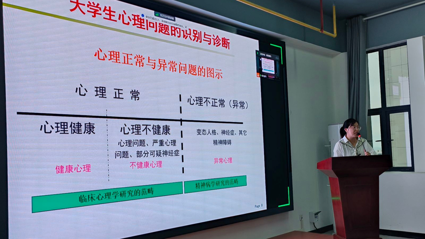 为进一步丰富BBIN波音平台百家乐学生心理健康工作,普及心理适应技能,帮助2023级新生更好地适应大学生活,增强同学们对心理健康的认识,2023年9月12日下午4:10,BBIN波音平台百家乐在实训大楼1518和618开展了由蒋霞霞老师主讲的心理健康教育讲座。
