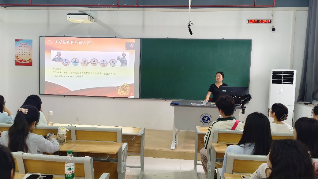 会议第一项为“大学生入伍宣讲”。娄老师以饱满的热情,详细介绍了大学生入伍的相关政策,包括入伍条件、报名流程、服役期间的待遇以及退役后的优惠政策等。他特别强调了入伍对于锻炼个人意志、提升综合素质的重要作用,并分享了一些优秀大学生士兵的先进事迹和成长经历。同时他指出,入伍不仅是为国家贡献力量,更是一段淬炼意志、提升自我、实现人生价值的宝贵旅程。