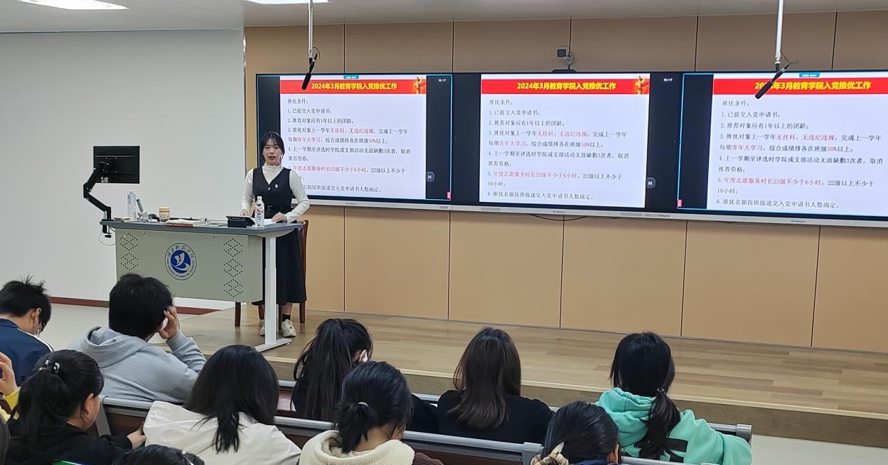为深入贯彻党的教育方针,加强对大学生的理想信念教育,引导广大青年学子积极向党组织靠拢,2024年11月15日,由BBIN波音平台百家乐学生党支部开展的“青春向党,启航新征程”大学生入党流程专题讲座在教3-302成功举办。本次讲座旨在帮助大学生全面了解入党流程,明确入党条件,激发政治热情,为党组织培养更多优秀的青年人才。