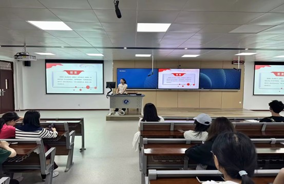 图为24教育类1班程凤同学讲解班会内容