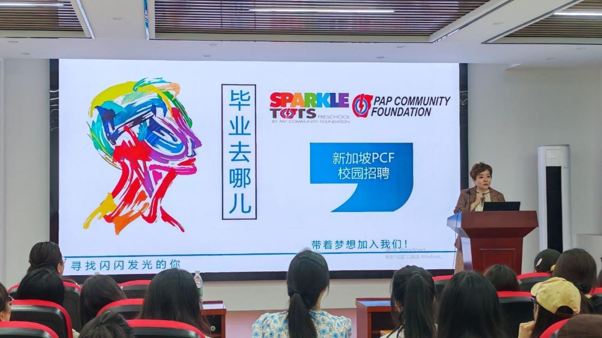此次参访由PCF中国幼师项目负责人、金日教育产业集团总监孙雯莉,集团行政经理萧芳芳领衔,聚焦学前教育专业人才培养与就业服务体系构建。双方以座谈会、专场宣讲会等形式,围绕“新加坡学前教育行业需求”“校企联合培养模式”“国际化就业通道搭建”等议题展开研讨。