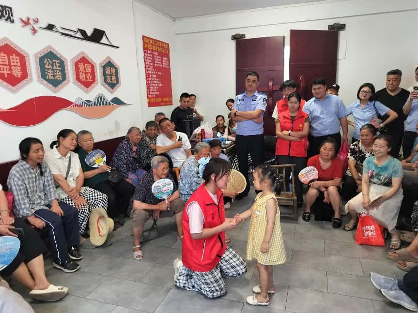 图为 宣讲员在书台社区以情景剧开展户外宣讲
