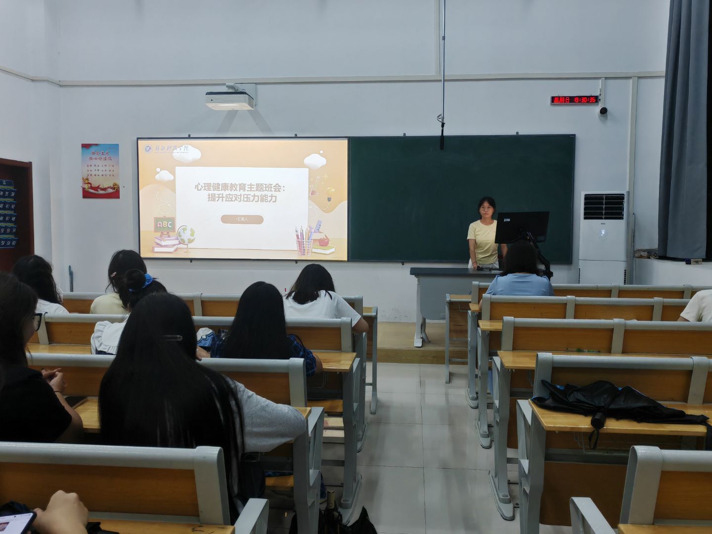 活动围绕“认识压力”“压力应对策略”“培养阳光心态”三部分展开。心理委员通过科普动画阐释压力的心理与生理机制,引导学生科学认识压力、消除负面情绪污名化;“我的压力树”互动环节中,学生分享学业负担、人际关系、未来规划等压力来源,在共鸣中缓解孤独感,现场氛围融洽。