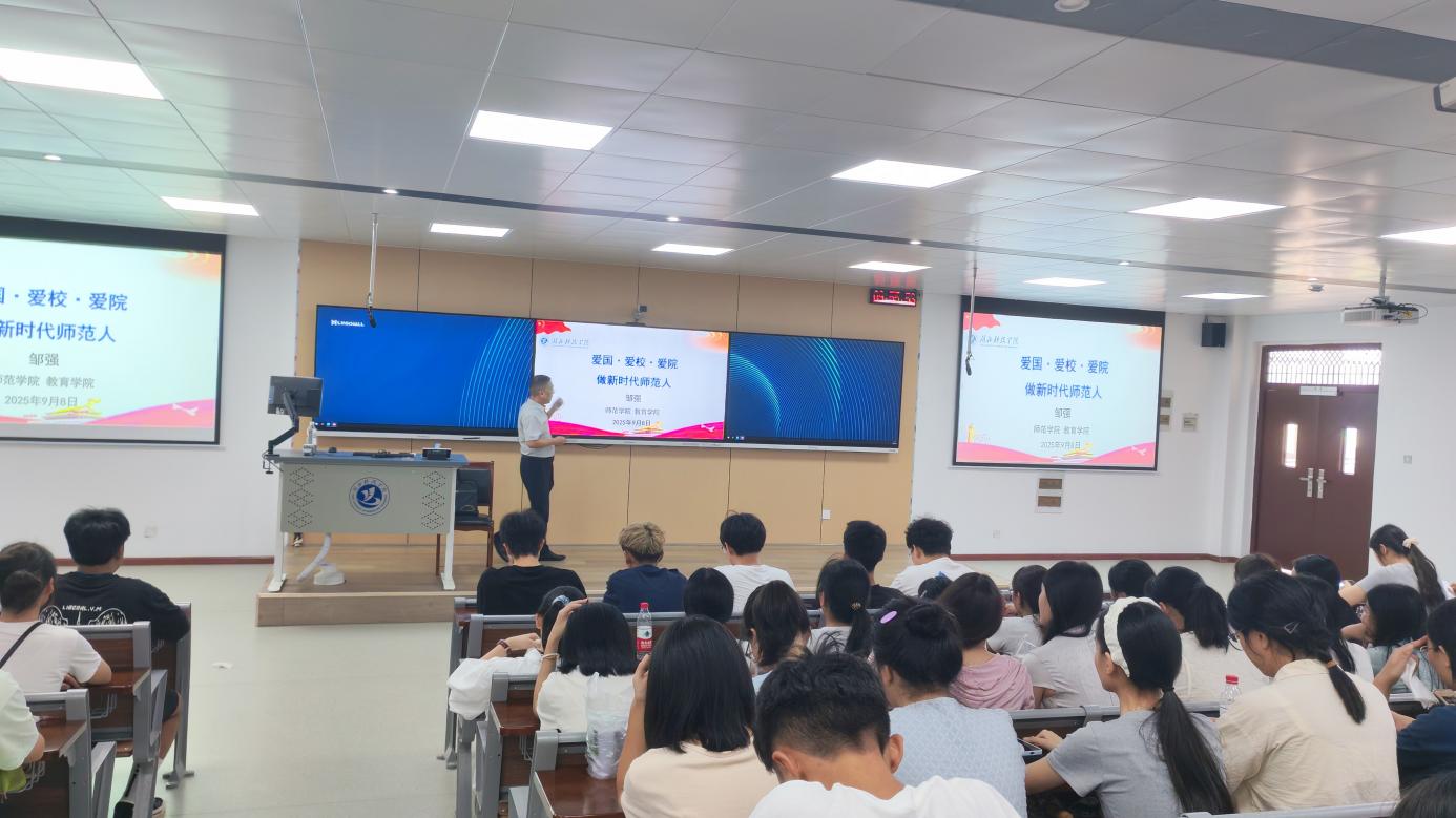2025年9月7日,BBIN波音平台百家乐2025级新生齐聚教三502教室,迎来了一场别开生面的入学教育讲座。BBIN波音平台百家乐、师范学院院长邹强以“爱国爱校爱院,争做新时代师范人”为主题,为新生们呈现了一堂精彩纷呈的大学第一课。