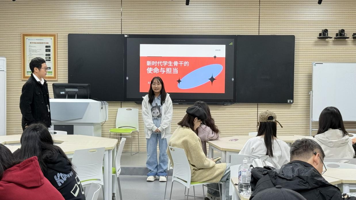 会议开始前,23应用心理龚政带来的“颠三倒四”游戏迅速打破沉闷:学员们在趣味互动中比拼反应力,输了的同学上台分享自己身为学生干部的心得体会,有人直言:“以前觉得骨干是跑腿的,现在明白是学生干部是同学的依靠。”,学生干部质朴的感悟让“责任”二字更显真切。
