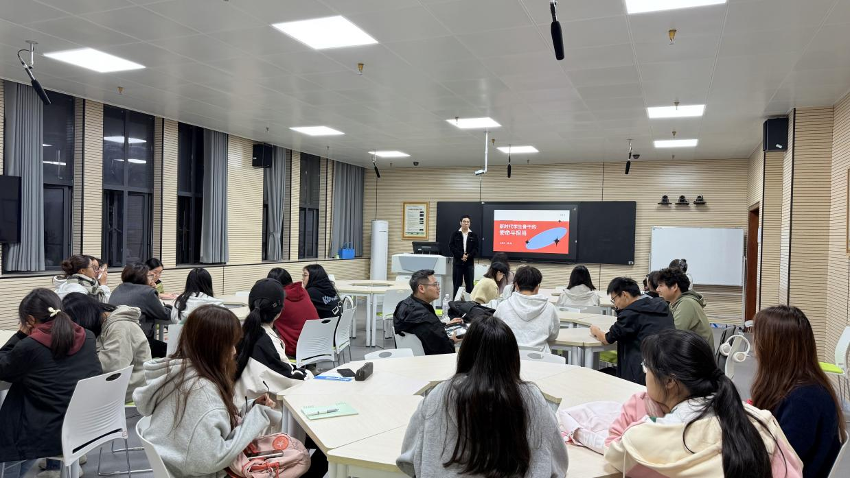 活动伊始,龚政学长以“学生骨干是什么、做什么、怎么做”为切入点,结合高校学生工作实际案例,剖析了新时代学生骨干的角色定位:“既是‘服务员’,要扎根同学、解决实际需求;也是‘联络员’,要架起师生沟通的桥梁;更是‘领航员’,要以自身行动引领优良学风班风。”