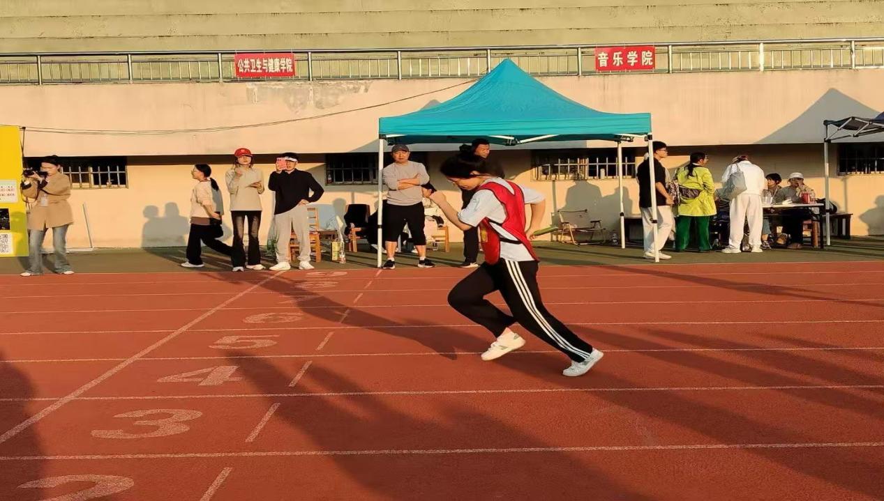 看台上,各学院的助威声此起彼伏,横幅与彩旗交织成热烈的海洋;场边的志愿者们忙碌穿梭,为选手们递水、记录成绩,成为赛场外的暖心底色。体育场内的“立大志 明大德”“成大才 担大任”标语,更将青春的朝气与青年的责任紧紧相连。