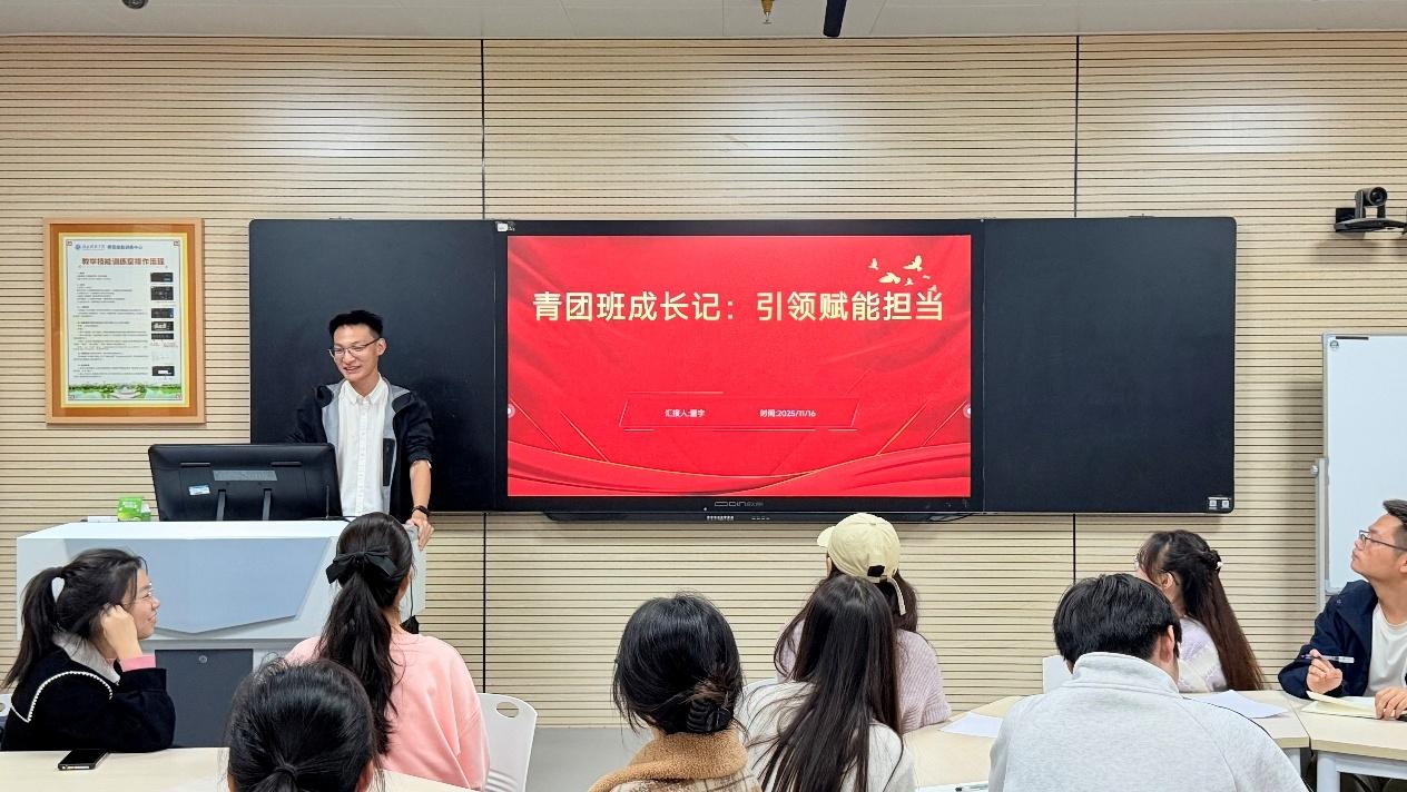 2025年11月16日晚8:00,BBIN波音平台百家乐“青团班”结业汇报在揽胜楼1002启幕。本次仪式聚焦学员成长收获与青年使命传承,通过学员成果汇报与老师总结寄语的形式,为本期青团班画上圆满句号。会议由23级小学教育2班汪志娟主持,BBIN波音平台百家乐学工办主任郑珍出席仪式,全体“青团班”学员共同参与,见证成长时刻。