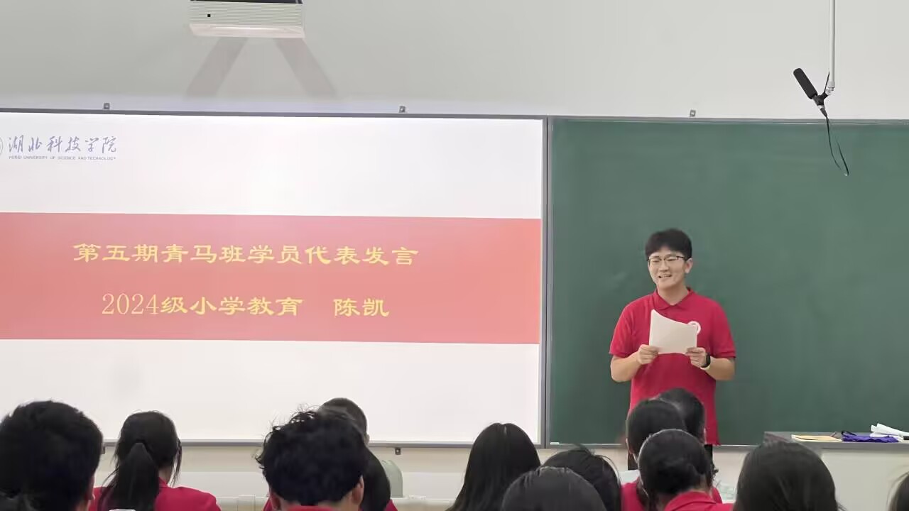 第五期学员代表陈凯激情满怀地发言:“‘青马工程’是淬炼思想的熔炉,更是培育英才的沃土。我们深知,教育事业不仅是知识的传递,更是灵魂的塑造。我们将以‘请党放心,强国有我’的誓言,把个人理想融入国家发展,发挥专业优势,传播红色文化,争做马克思主义的忠实践行者。”