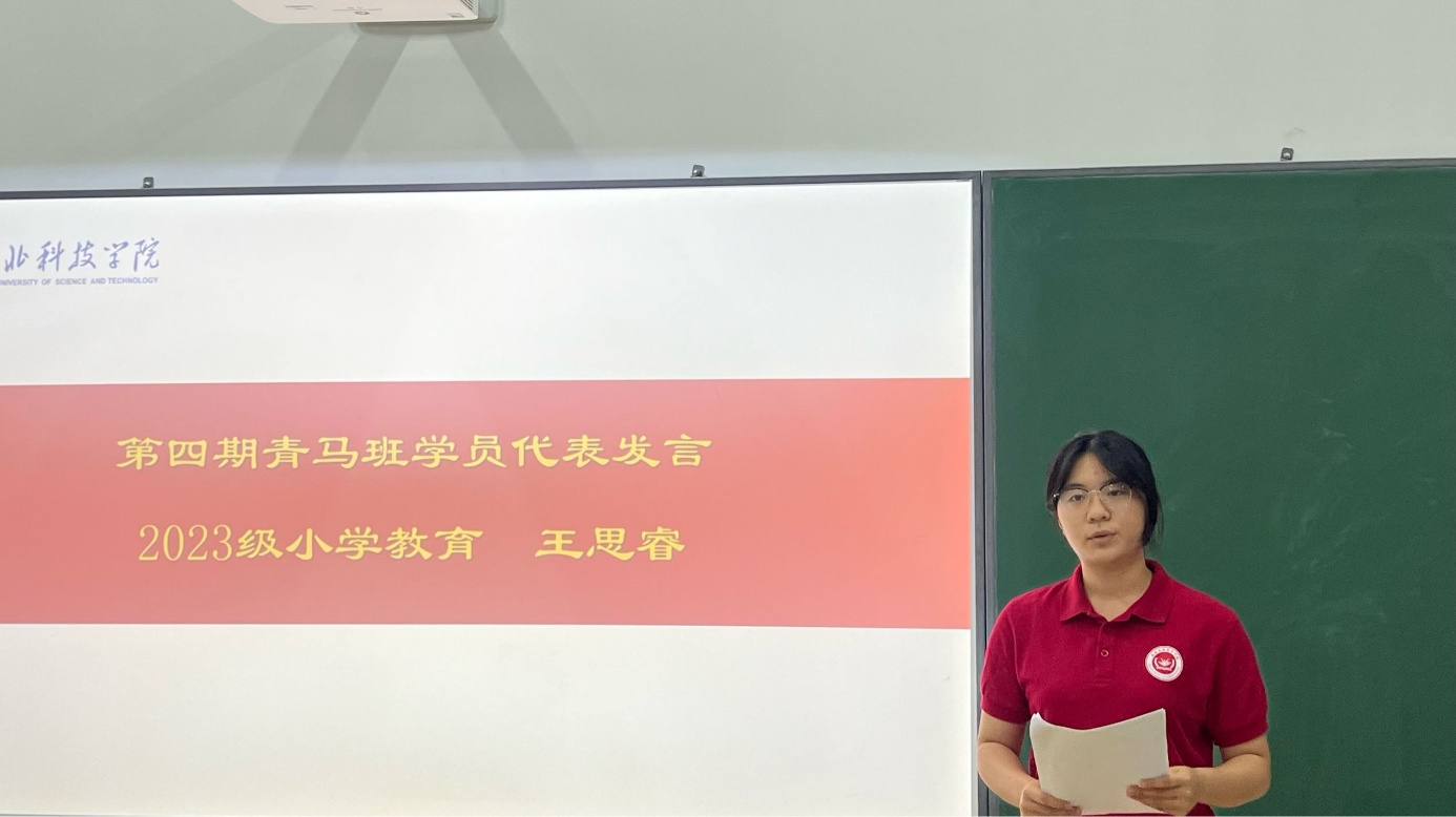 第四期学员代表王思睿上台分享感悟:“作为新时代青年,我们在青马工程的学习中,不仅收获了知识,更坚定了信仰。结业不是终点,而是新的起点。我们将永葆学习热情,把服务意识融入日常,用实际行动践行青马精神,在青春的赛道上奋力奔跑。”