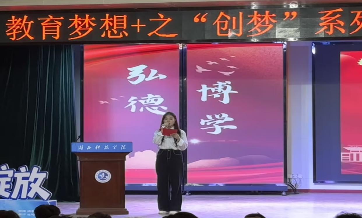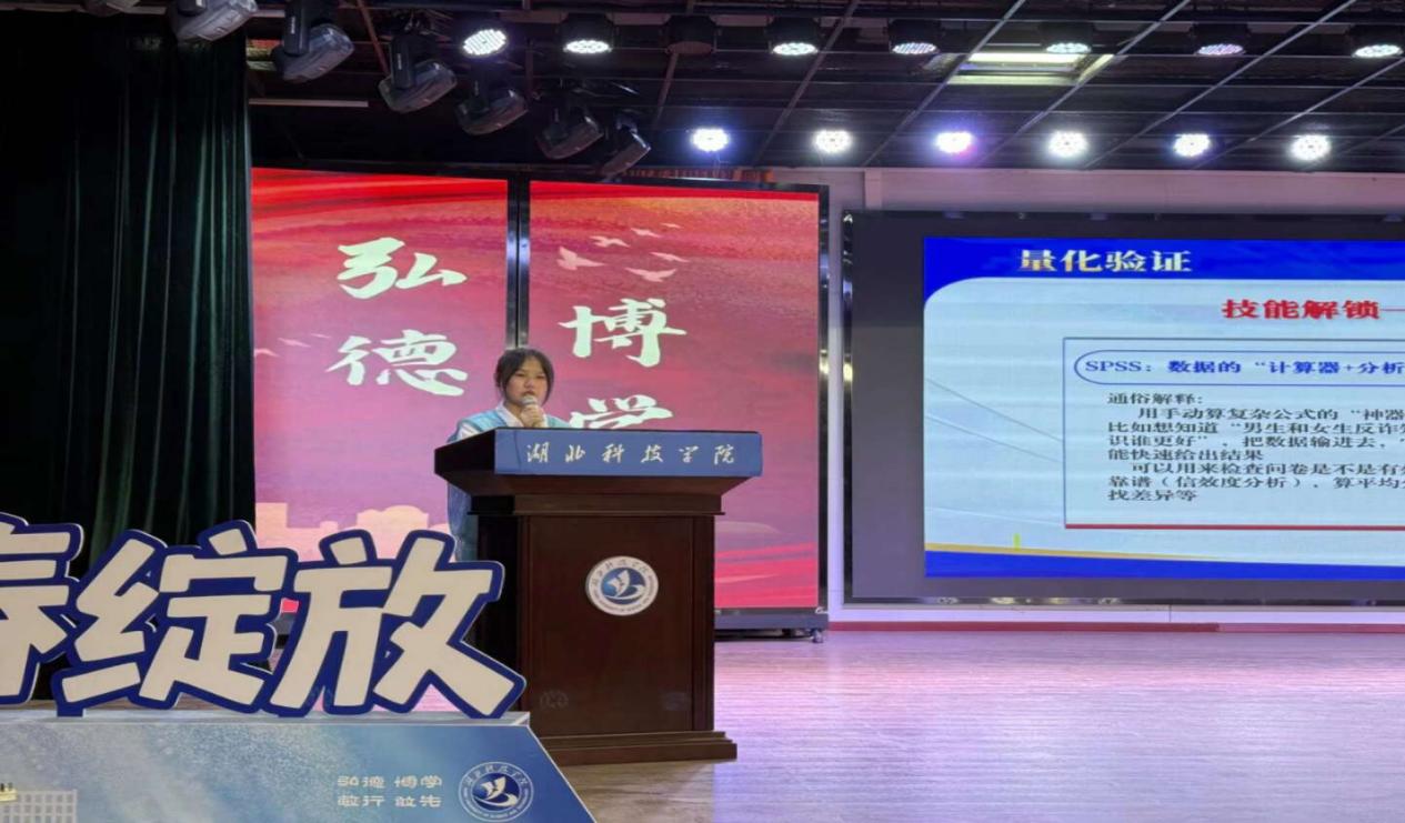 图为22级学前教育班罗钦扬为听众答疑解惑