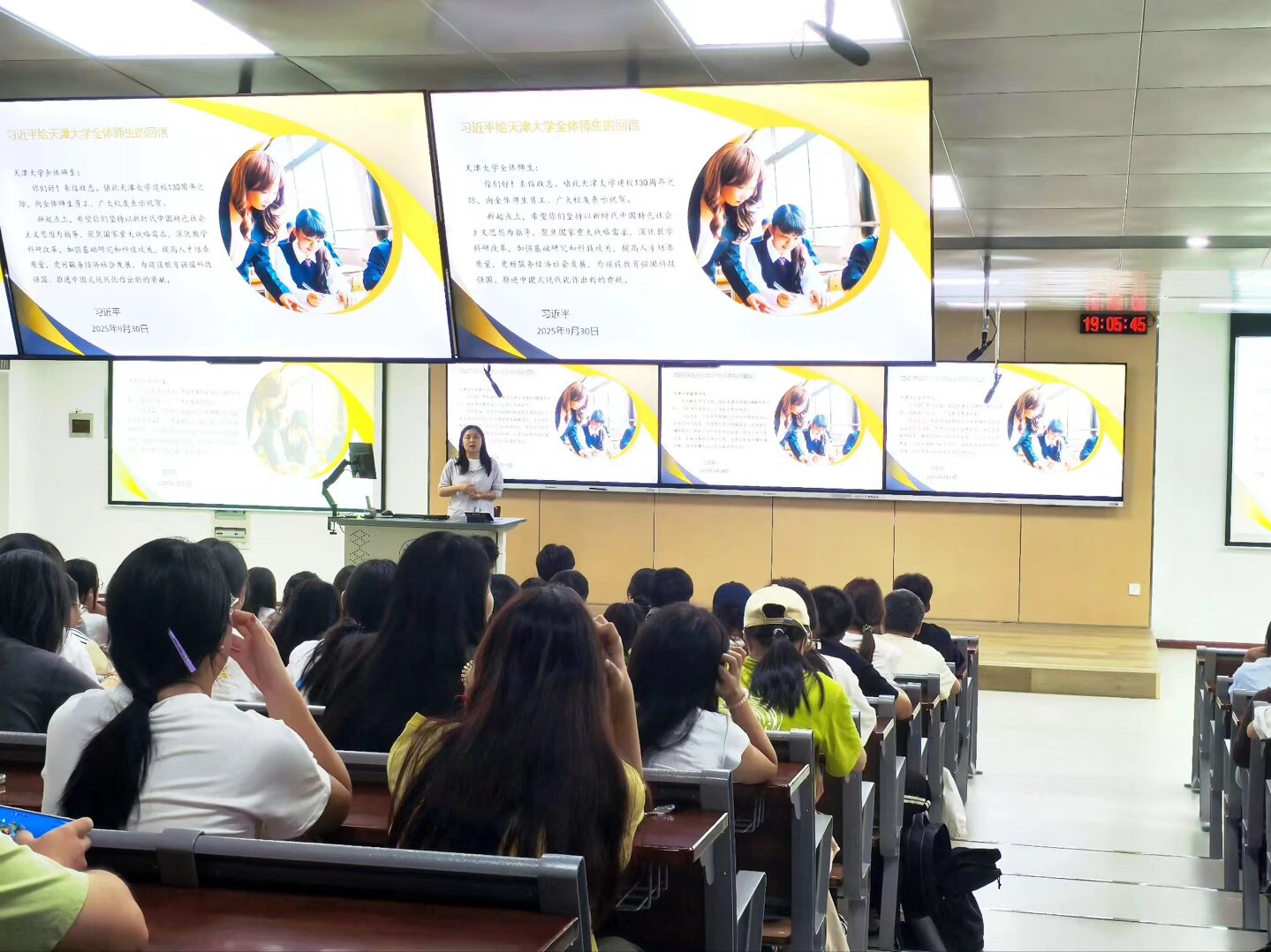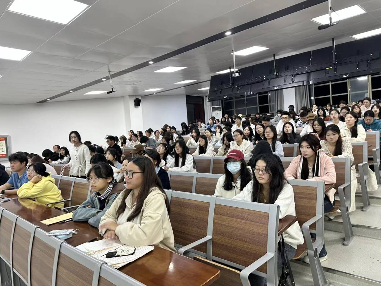 随后,25级班会额外强调班级事务板块,25小教班班助刘好学姐强调学风建设、日常管理,推进课堂秩序规范,杜绝迟到、带早餐、上课玩手机等影响学习的行为;日常管理中,明确电梯、教室等公共空间禁食,离开教学空间需关闭所有设备电源、带离垃圾并关好门窗,雨天雨伞统一放置教室外等要求。