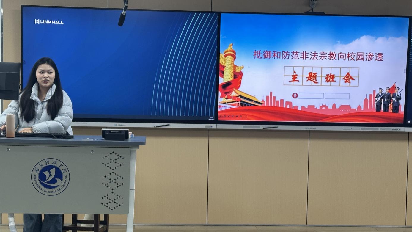 为增强广大学生抵御和防范非法宗教渗透的意识与能力,BBIN波音平台百家乐于2026年3月22日晚7:00围绕“抵御和防范非法宗教向校园渗透”主题召开班会,全面普及宗教政策法规与反邪教知识,引导学子树立科学世界观,共同守护清朗校园环境。