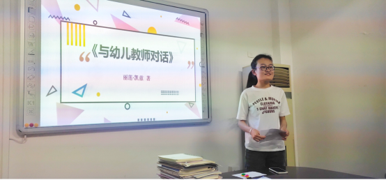 图为张瑞同学分享《与幼儿教师对话》