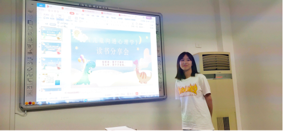 图为张梦妮同学分享《儿童沟通心理学》