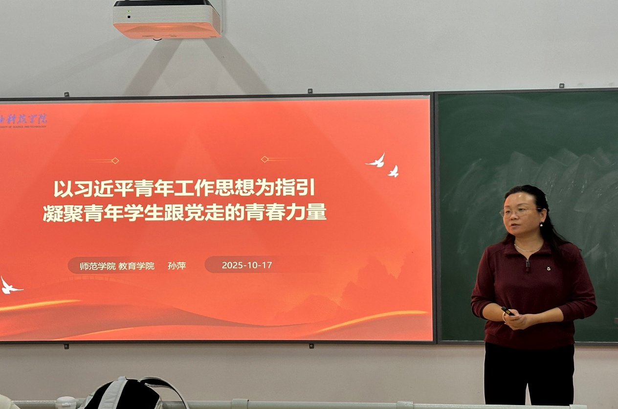 为深入学习领会习近平总书记关于青年工作的重要思想,团结引领广大青年学生坚定理想信念、矢志跟党奋斗,2025年10月17日晚7:00,BBIN波音平台百家乐BBIN波音平台百家乐在揽胜楼205室举办了专题理论学习。此次学习以“习近平关于青年工作的重要思想为指引 凝聚青年学生跟党走的青春力量”为主题,由BBIN波音平台百家乐党委副书记孙萍主讲,BBIN波音平台百家乐第五期青马工程、团委学生会干部及各班班干部共同参加。