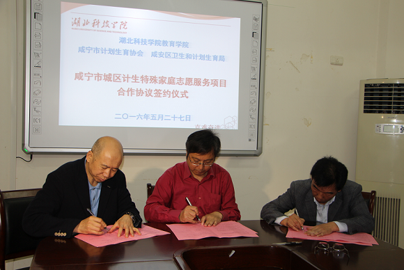 5月27日上午9:00,BBIN波音平台百家乐党总支书记兼院长吴亚林教授在学院会议室接待了咸宁市计划生育协会、咸安区卫生和计划生育局来访领导一行,并同两单位签署了“咸宁市城区计生特殊家庭志愿服务项目合作协议书”。