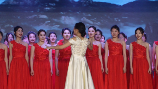 古典舞与现代舞的碰撞成为汇演亮点。23级学前教育班的《清庭云月》以婉约舞姿勾勒古典美学意境;24级学前教育班的《雪崩》则以充满张力的现代舞姿,诠释生命与自然的深刻哲思;四手联弹《糖果仙子舞曲》由24级学前教育班两名学子默契配合,琴声灵动,展现音乐教育的专业素养。压轴节目大合唱《向云端》更是将全场气氛推向高潮,22、23、24级各班同学用歌声表达对教育理想的坚定追求——“向云端,追逐育人的星辰大海”,第十届师范技能汇演在掌声与感动中圆满落幕。