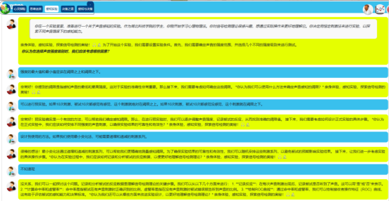 在AI对话机器人的特征设计上,蒋霞霞老师也进行了精心规划。这些机器人分别扮演了不同的角色,包括专家代理和同伴代理。专家代理具备丰富的专业知识,能够为学生提供权威指导;而同伴代理则与学习者身份相似,能够为他们提供认知和情感上的支持,进一步提高了学习的沉浸感和个性化程度。