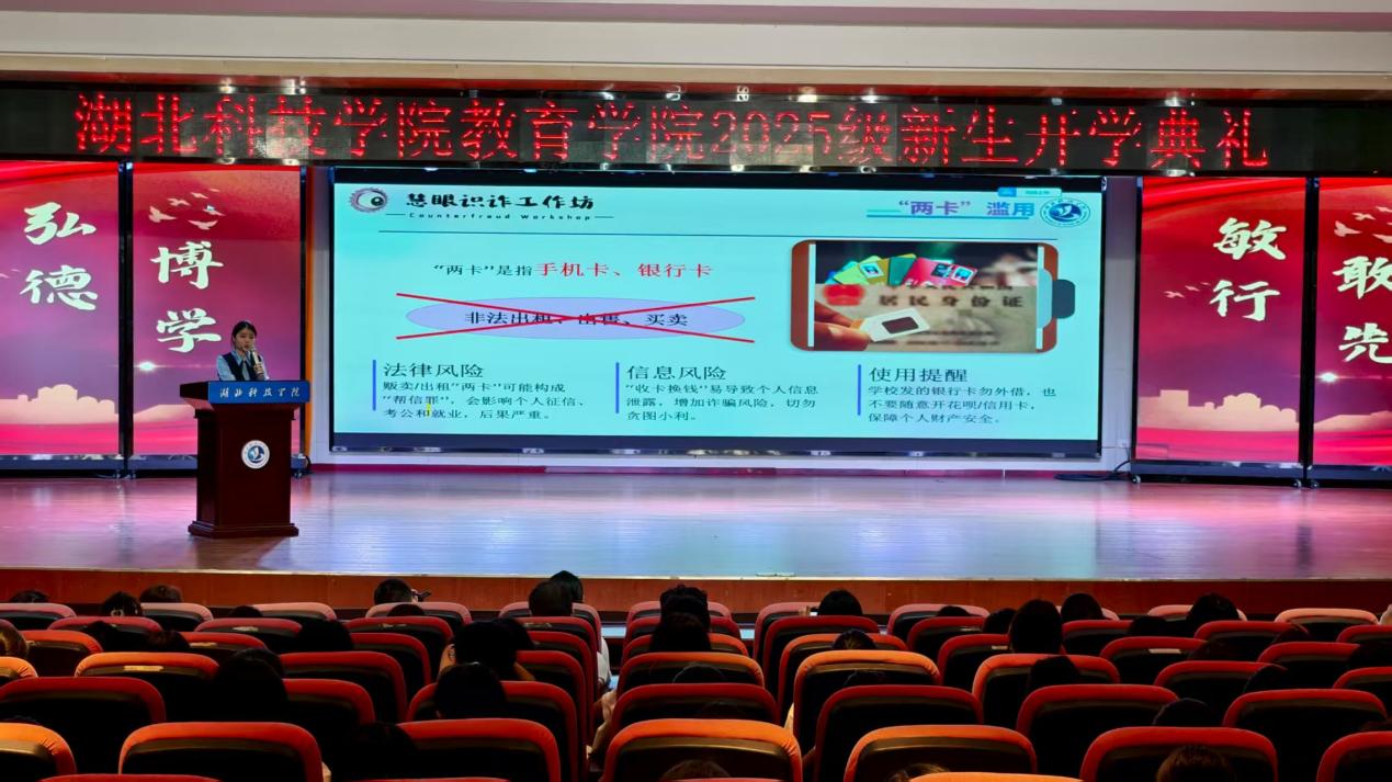 紧接着,“慧眼识诈”宣讲团接续开展防范网络诈骗专题讲座。宣讲团成员结合近期高校高发的“刷单诈骗”“帮信罪”“两卡犯罪”等案例,拆解诈骗分子的套路与话术,传授“核实信息、拒绝转账、及时报警”的应对技巧,新生们纷纷表示“收获满满,今后会提高警惕,保护好个人财产安全”。