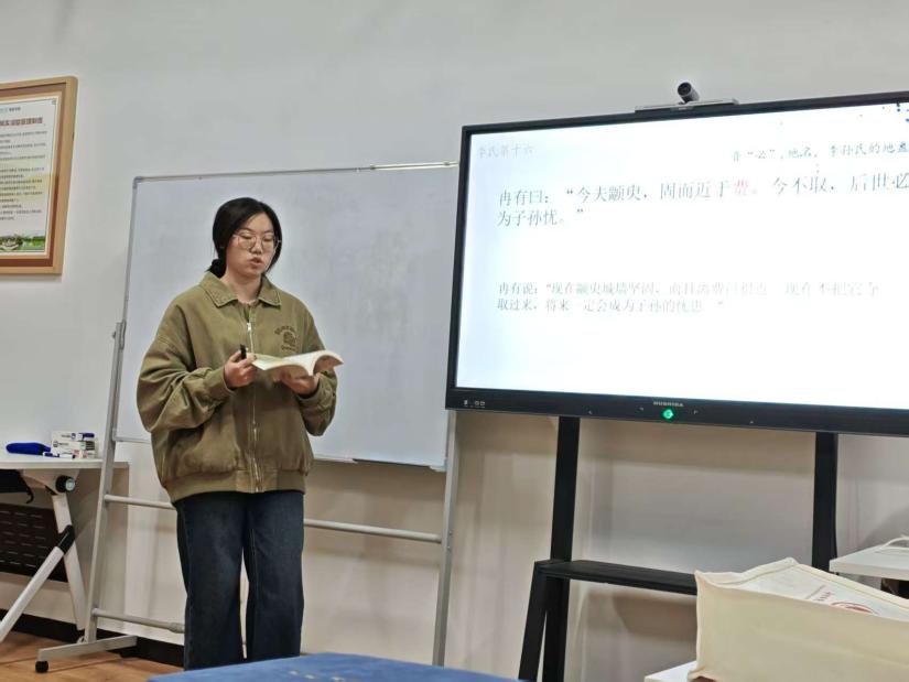图为 姚鑫玥同学进行分享