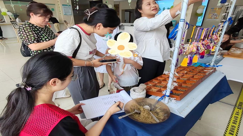 活动中,身着红马甲的志愿者团队全程保驾护航:场内维持秩序、协助保障安全、场外看管防止儿童单独外出;活动结束后,志愿者们协助还原桌椅、打扫卫生,并负责记录登记、发放香包等收尾工作,以细致分工确保各环节顺利进行。