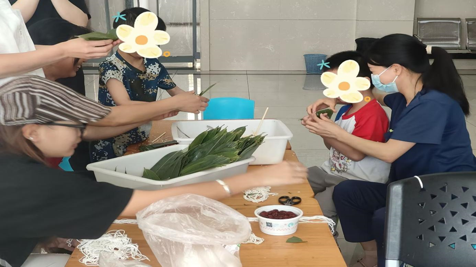 5月30日,七彩梦康复医院活动区布置童趣盎然。志愿者与患儿家庭围坐,手把手教学包粽子,翠绿粽叶与雪白糯米在孩子们手中变成形态各异的“小作品”。中医康复科组织的艾叶香包手工DIY中,无刺干艾叶、彩布与丝线制成的香包,既承载健康寓意,又成为孩子们的节日珍藏。