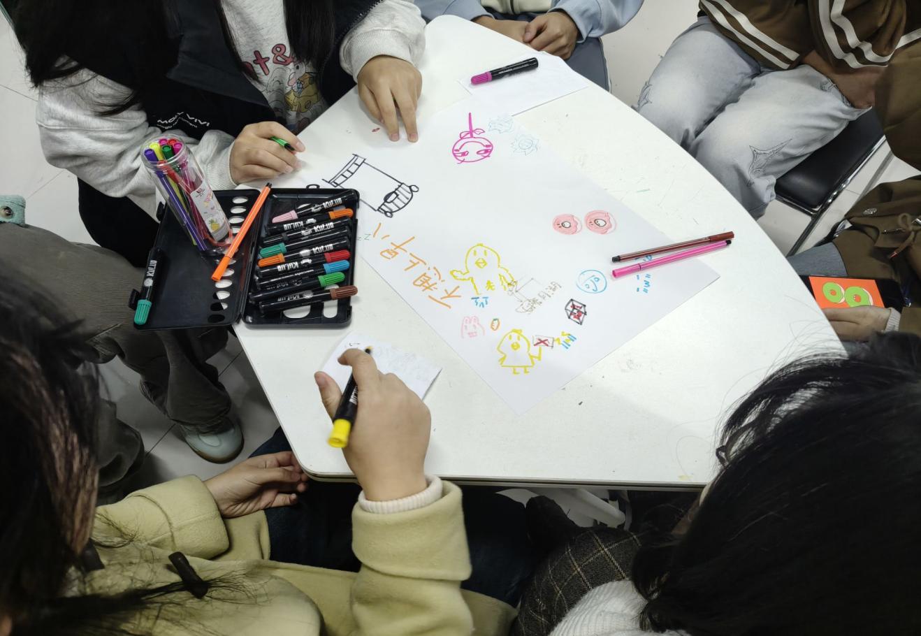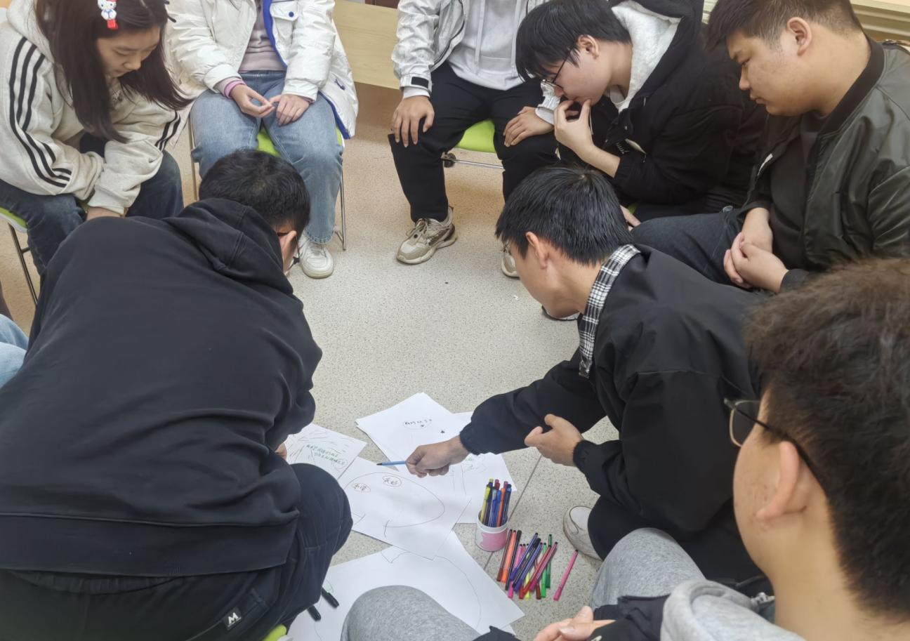 图为“人际交往”团辅小组带领团辅成员绘制团辅代表作