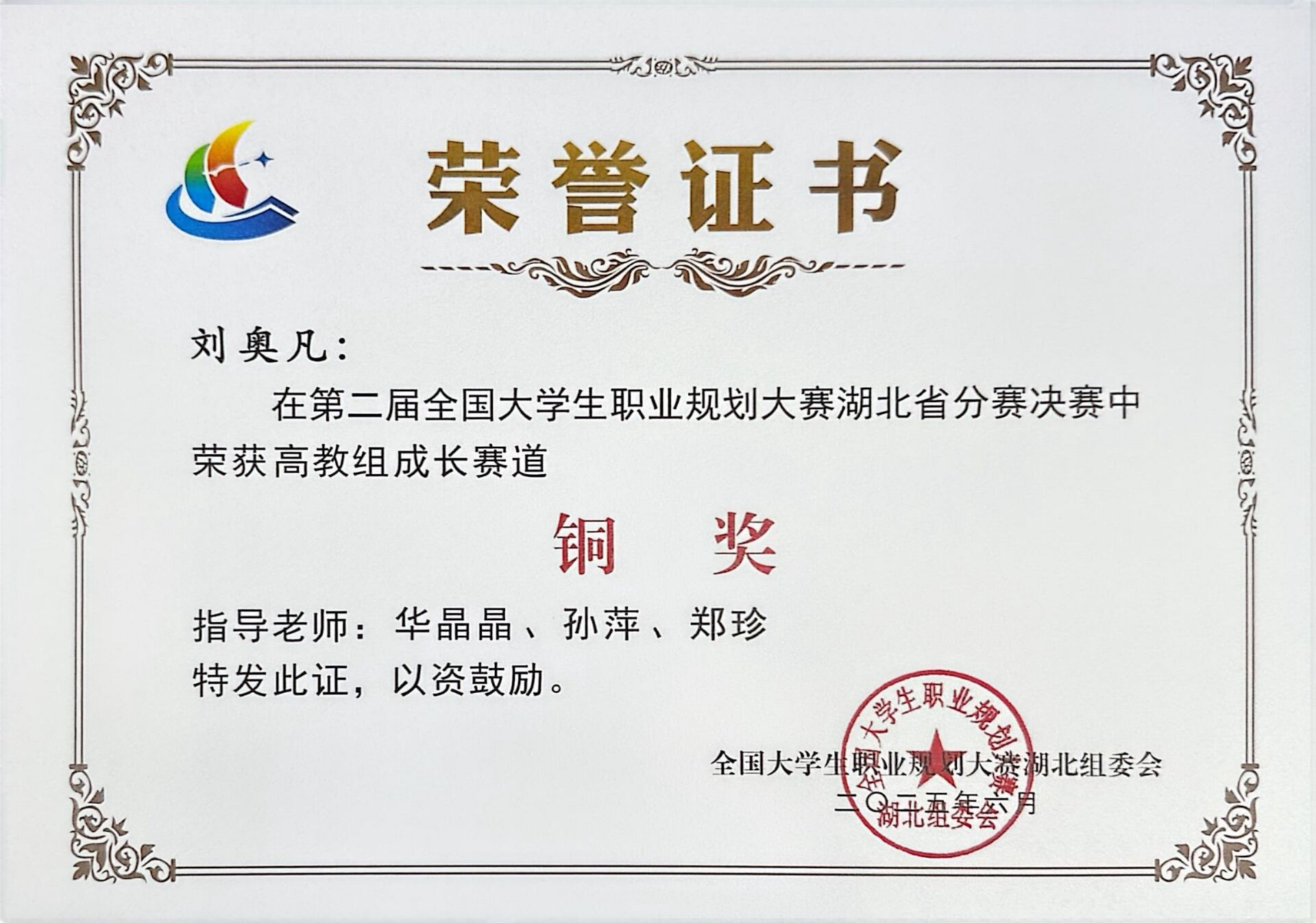 刘奥凡:第二届全国大学生职业规划大赛湖北省分赛决赛高教组成长赛道铜奖